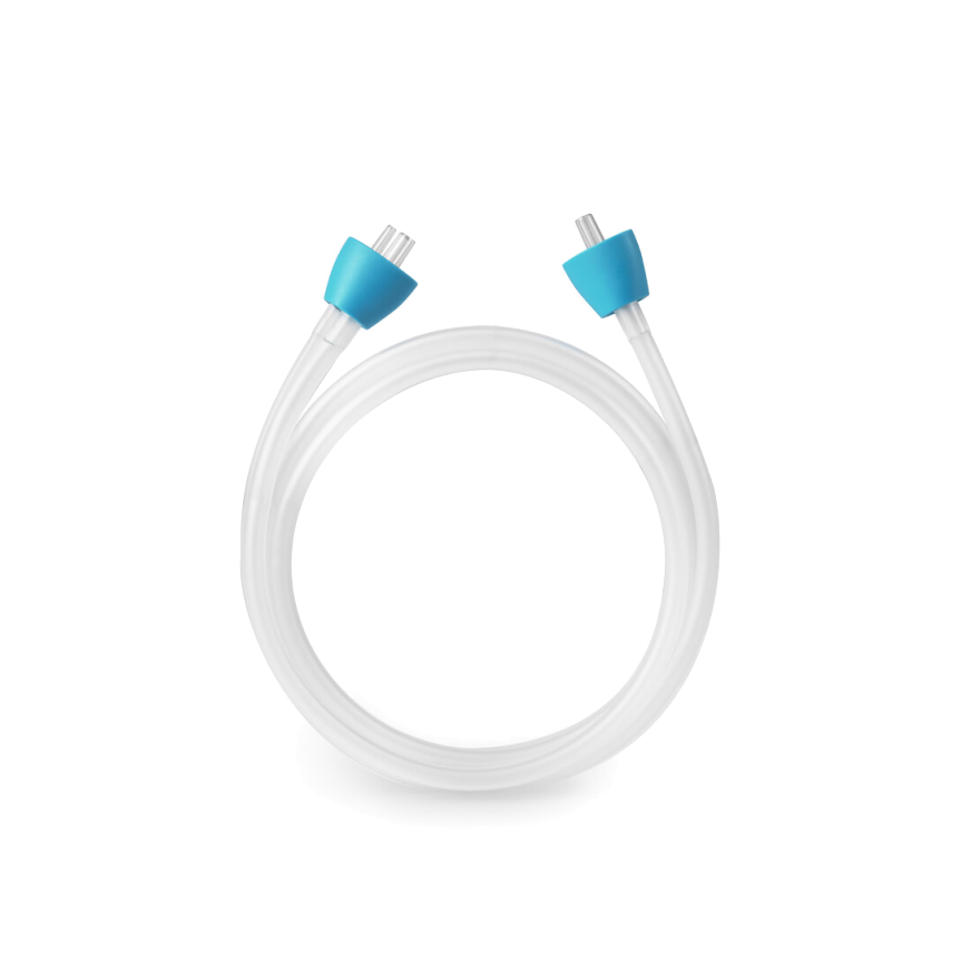 Once the product has dried after irrigation, it should be stored at room temperature and away from direct sunlight, preferably in the toiletry bag. Ensure the tubes have no kinks and are kept away from sharp objects. They can be washed in mild soapy water when needed. The tube with the turquoise connector must be replaced after 90 uses, but it can be replaced beforehand if soiled.