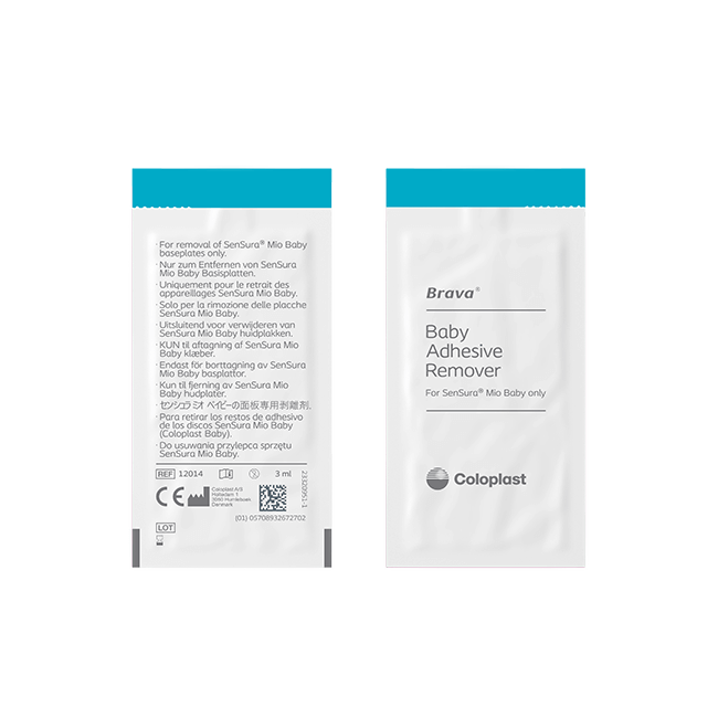 Brava® Baby Adhesive Remover should be used when changing the SenSura® Mio Baby baseplate. Brava Baby Adhesive Remover should be used when changing the SenSura® Mio Baby baseplate and bag. It also facilitates gentle removal of the baseplate.